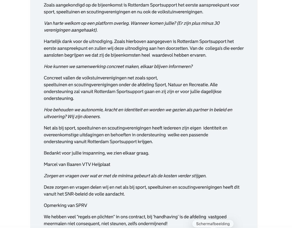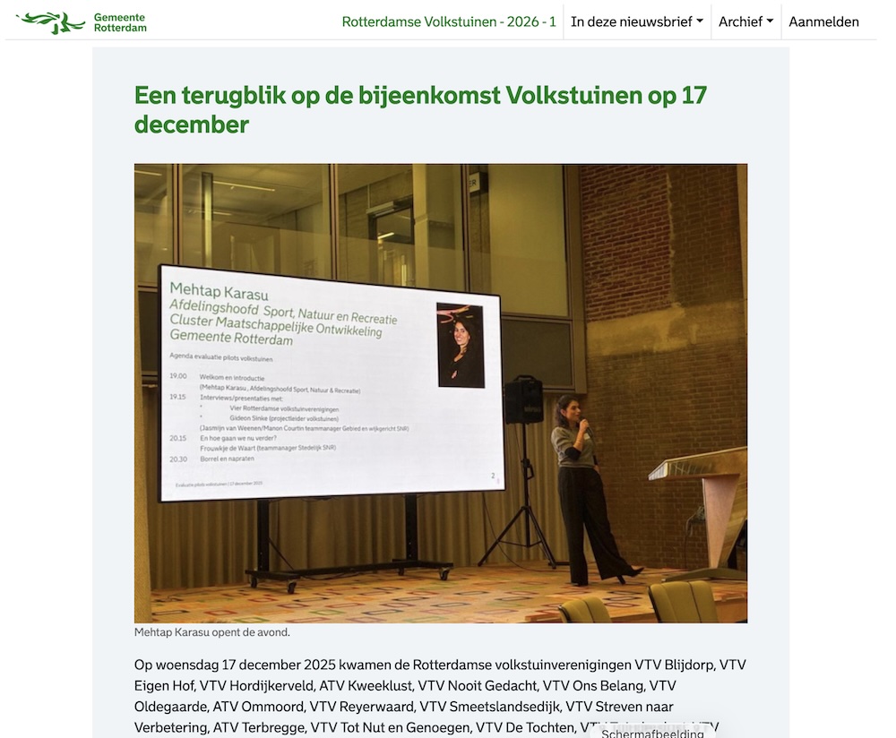 Het hele goede nieuws op 17 december was dat volkstuinen voortaan onder Maatschappelijke Ontwikkeling – Sport Natuur Recreatie vallen. En bijvoorbeeld ook gebruik kunnen maken van de vele diensten van Sportsupport. In 2026 gaan wij merken hoe dat in de praktijk is.