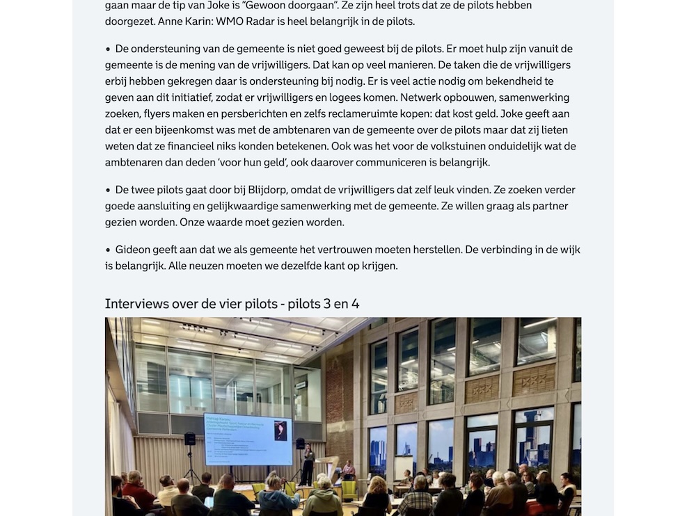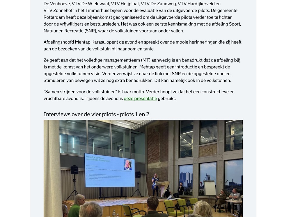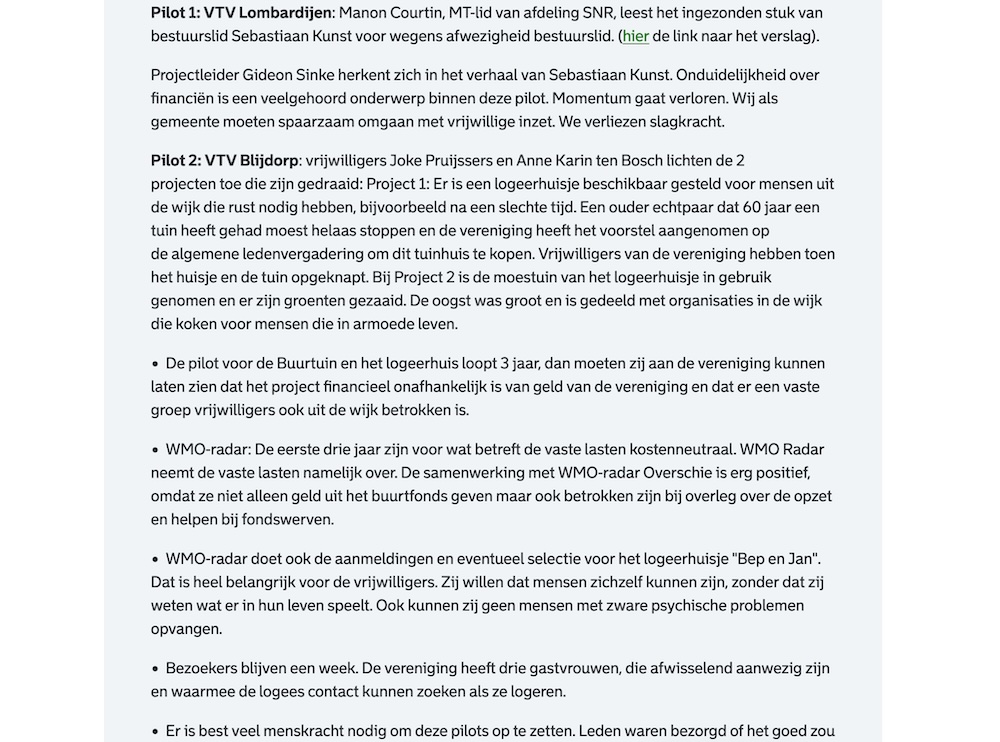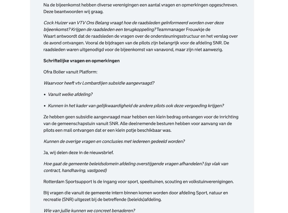 Ruim een jaar later vond dus de evaluatie plaats met de gemeente. Diverse volkstuinverenigingen waren aanwezig en de resultaten zijn gepresenteerd. Het verslag van de gemeente kun je online lezen, of hieronder de plaatjes van die webpagina bekijken (voor ons archief hebben wij het bewaard, want wellicht verdwijnt het na een tijdje van de site van de gemeente).